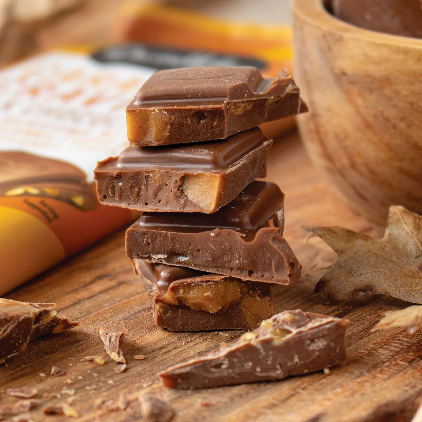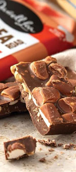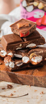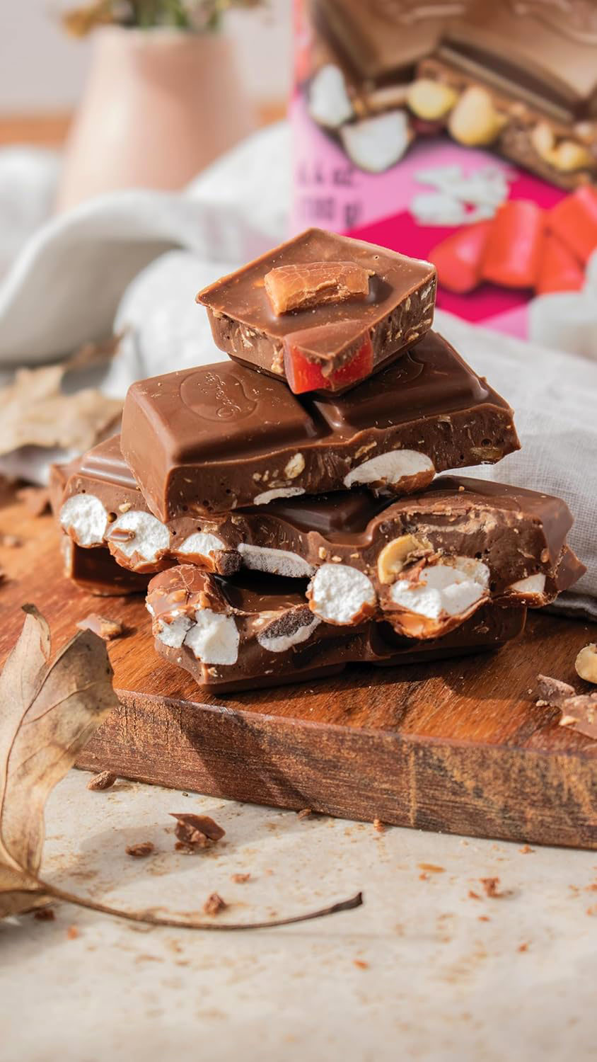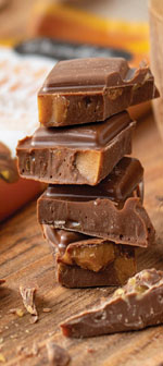 Chocolate Delicioso con Fudge de Caramelo Masticable y Chips de Caramelo Crujientes |