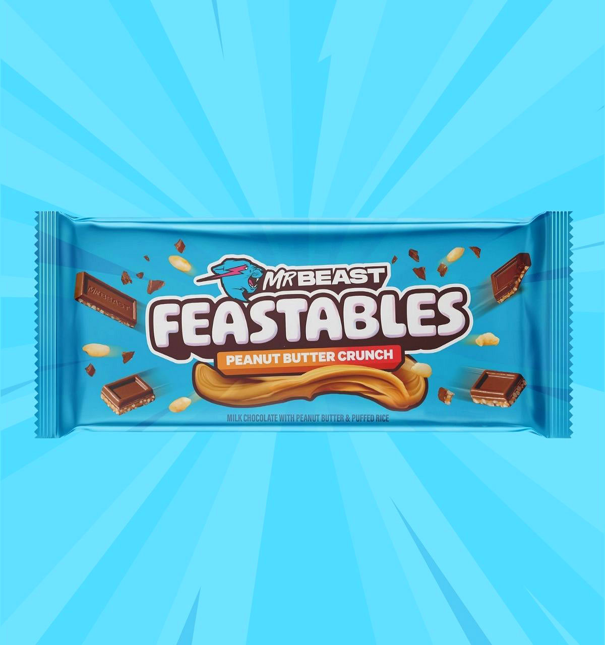 MrBeast Feastables 35g y 60g. Leche Chocolate, Crema de Cacahuete Cremosa y Arroz Puffs. De Tamanos Chico y Grande MUY Deliciosos. |
